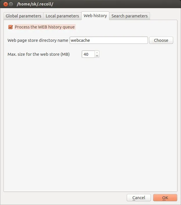 假如你使用火狐浏览器,要去搜索你每天访问的浏览历史,你可以使用这个火狐扩展。这个火狐扩展可以和Recoll一起工作去索引你全天浏览的网站。在安装完这个扩展之后,在Recoll的索引配置中从web历史标签页中激活它就可以咯。