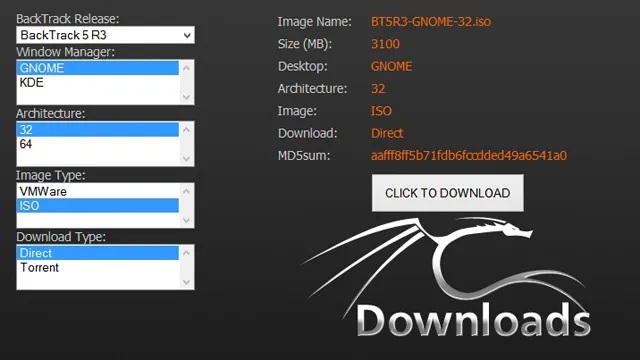 - The BackTrack 5 Live DVD。BackTrack是一款支持自启动的Linux发行版,上面集成了大量的网络测试工具。虽然这对于安装、配置Reaver并不是必需的一个条件,但是对于大多数用户却是最简单一个方法。从BackTrack的下载页面(传送门)下载Live DVD,然后刻盘。这里你也可以下载镜像然后使用VMware安装,如果你不知道VMware是啥,额,那就还是刻盘吧。如图所示,下载的时候,下拉菜单选择BackTrack 5 R3版本、Gnome环境、根据你的CPU选择32或64位系统(如果这里不确定是32还是64,为了保险起见,请选择32位),下载类型选择ISO,然后就可以点击下载了。