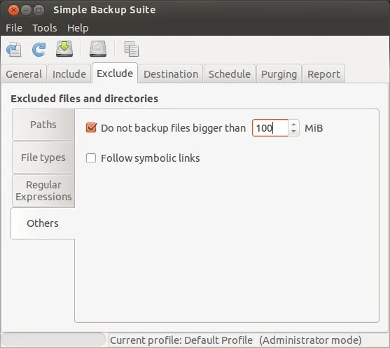 在默认配置下,SBackup 不会备份.gvfs, .thumbnails, .Trash 和 .cache 这些文件夹