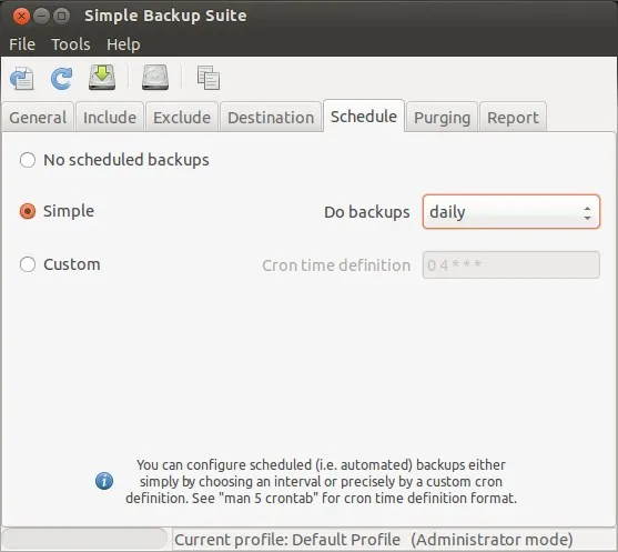 在本教程中,我将以 root 权限运行 SBackup,并且使用的是默认配置