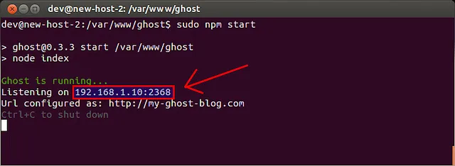最后,你就可以以用户模式像下面这样运行Ghost: