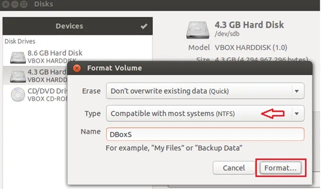 插入磁盘后,进入Unity Dash 并搜索Disks。打开它并选择你希望适用的外部驱动器,点击 Tools –> Format