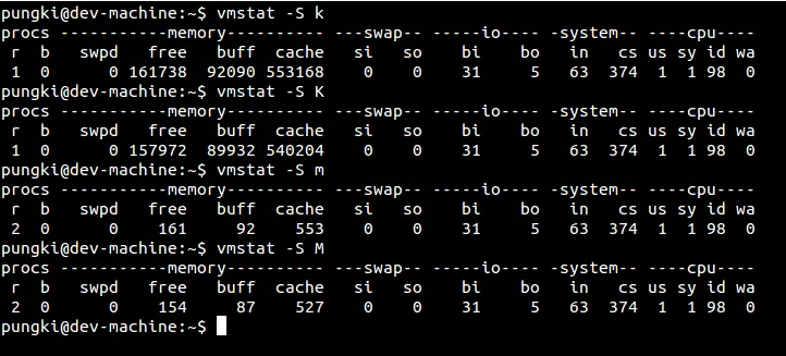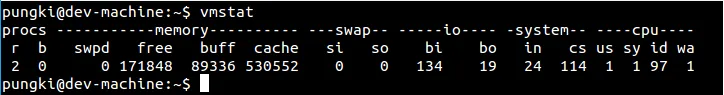 和mpstat一样,vmstat包含在sysstat包中。如果你还没有,请安装sysstat包。