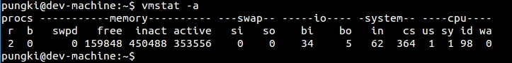 要这么做,你可以在vmstat后加入-a选项。这是个示例。