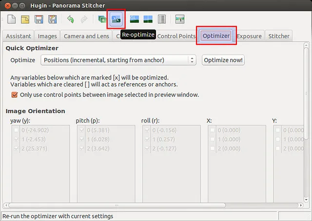 接下来回到 Hugin 主窗口中的 Assistant 标签,再次点击 Align 按钮来看看是否能得到一个更棒的结果。