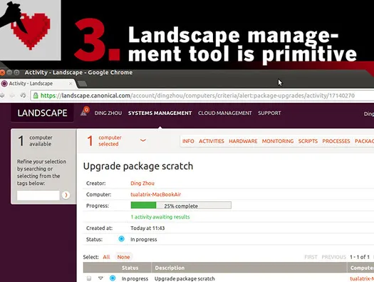 老版本的landscape管理工具:Canonical的landscape服务还不够先进,实际上,甚至比微软的跟着Windows发布的系统中心还要古老。