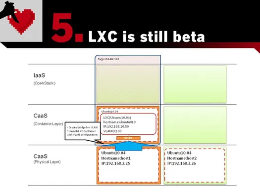 LXC仍然是测试版: 我们说Juju和LXC一起使用,但LXC本身仍在测试模式。它今年2月应该能出一个稳定版。
