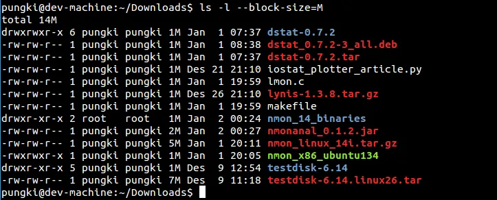 $ ls -l –block-size=M