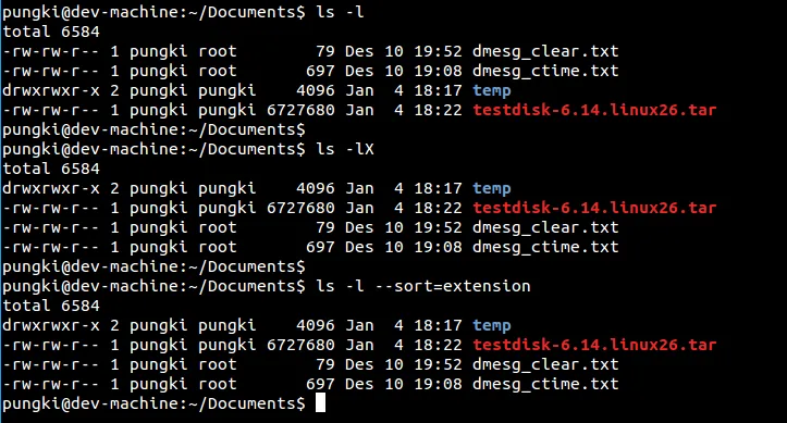 $ ls –sort=extension
