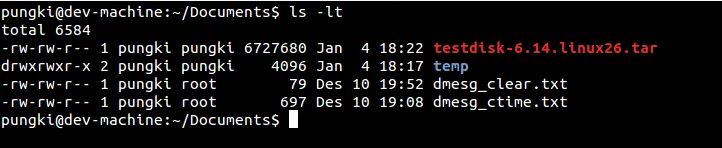 $ ls -lt