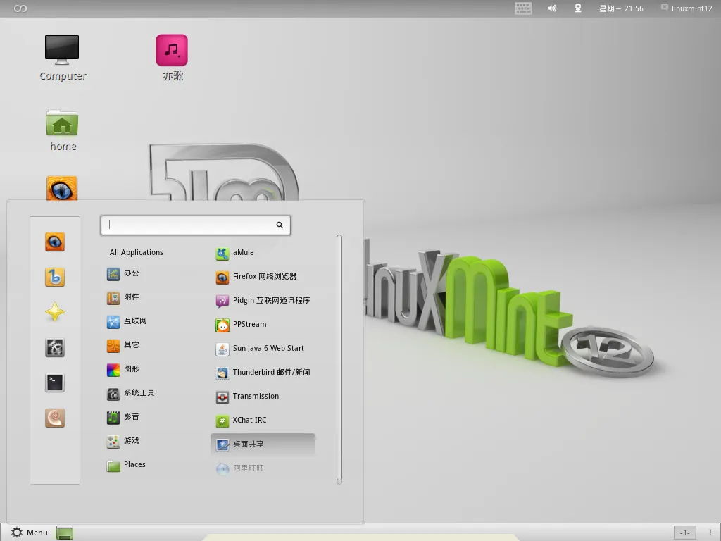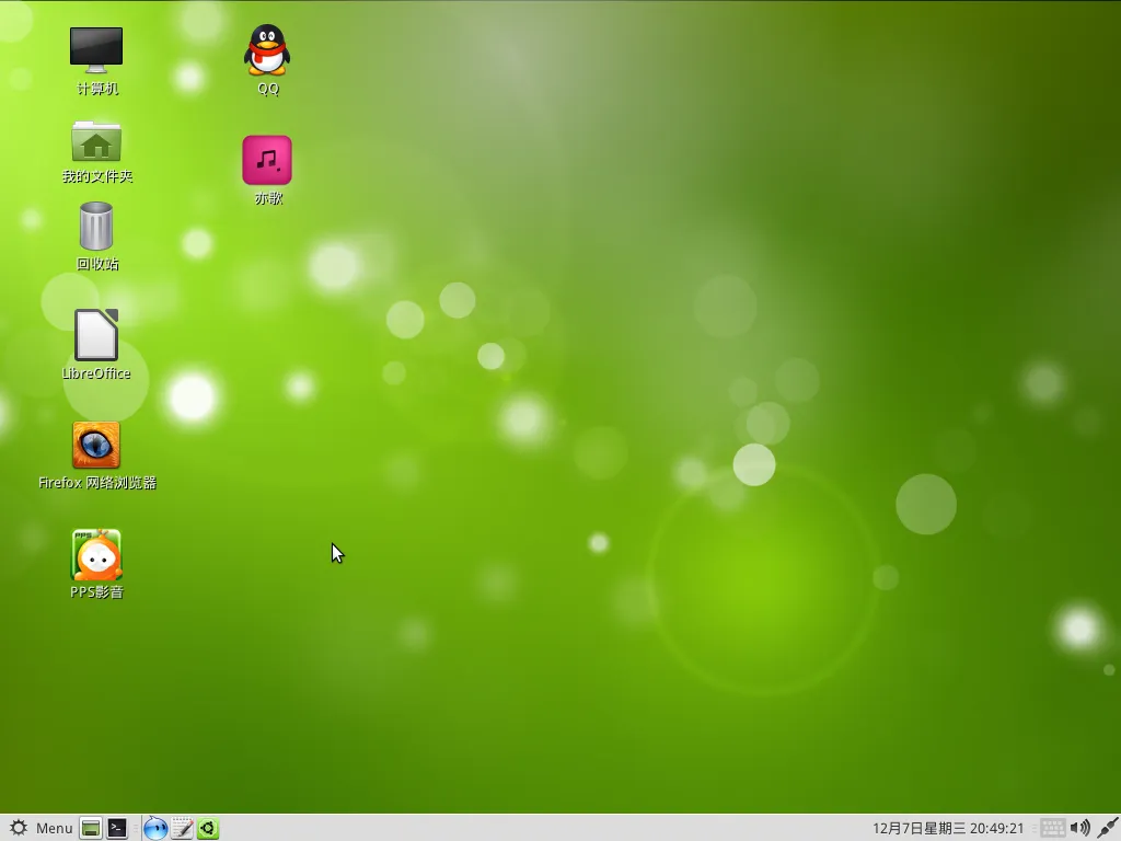 将常用的一些软件如:libreoffice firefox浏览器 PPS影音 默认放到桌面