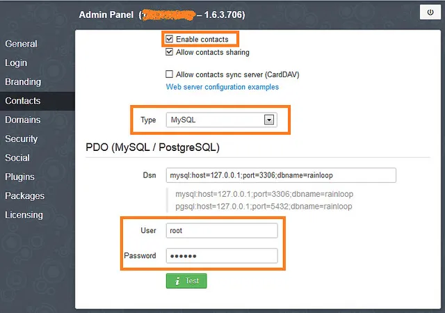 联系人功能需要数据库支持。我们将使用 MySQL 数据库启用联系人。RainLoop 可以手动创建所需的数据库,如下。