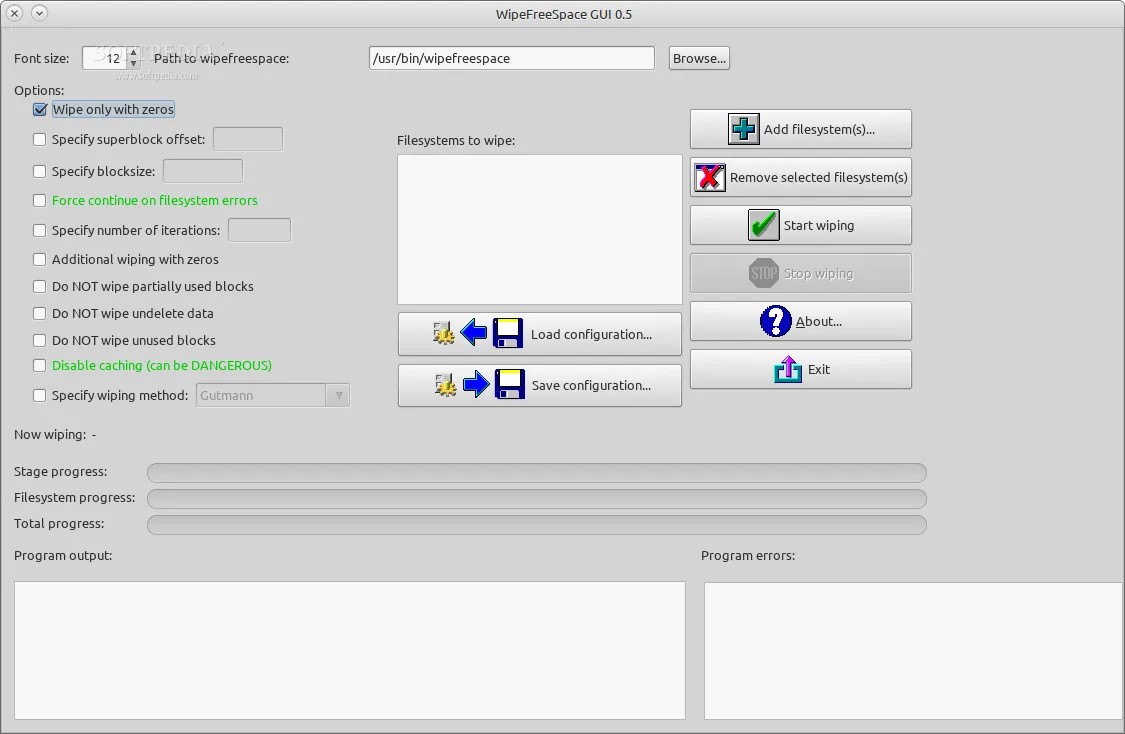 - Wipe Free Space GUI 0.5 tar.gz[sources] [380 KB]