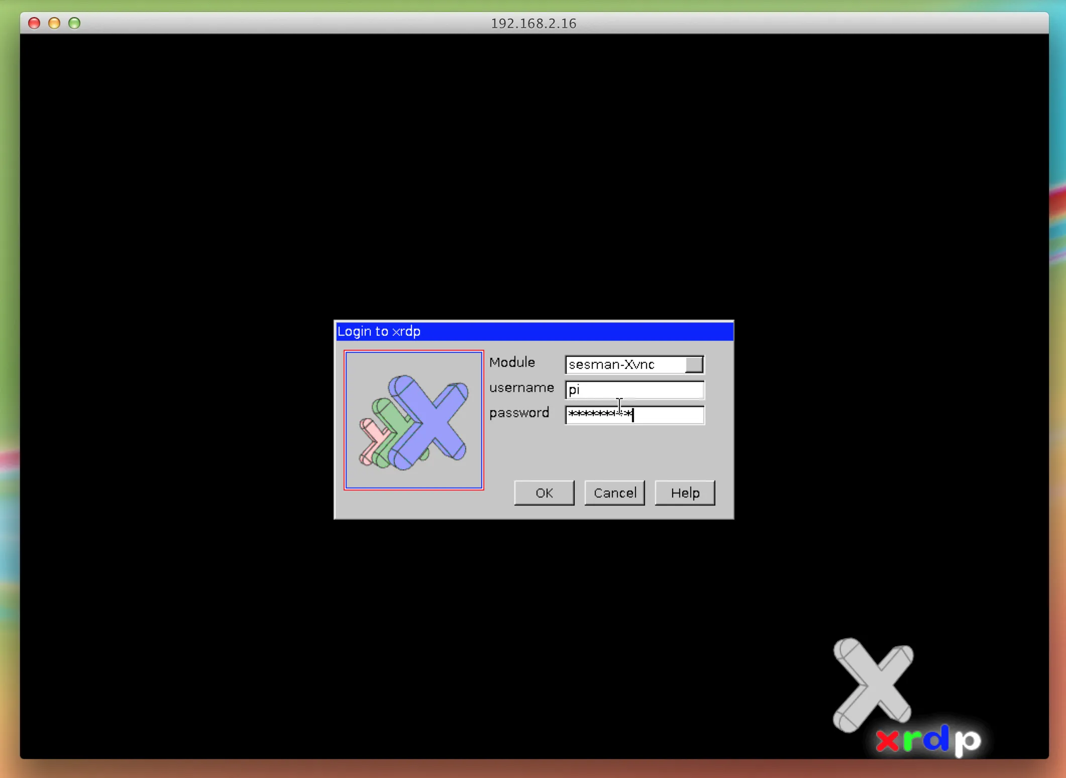 出现上述提示时输入你的IP地址。接下来会弹出xrdp窗口,提示你输入用户名和密码。