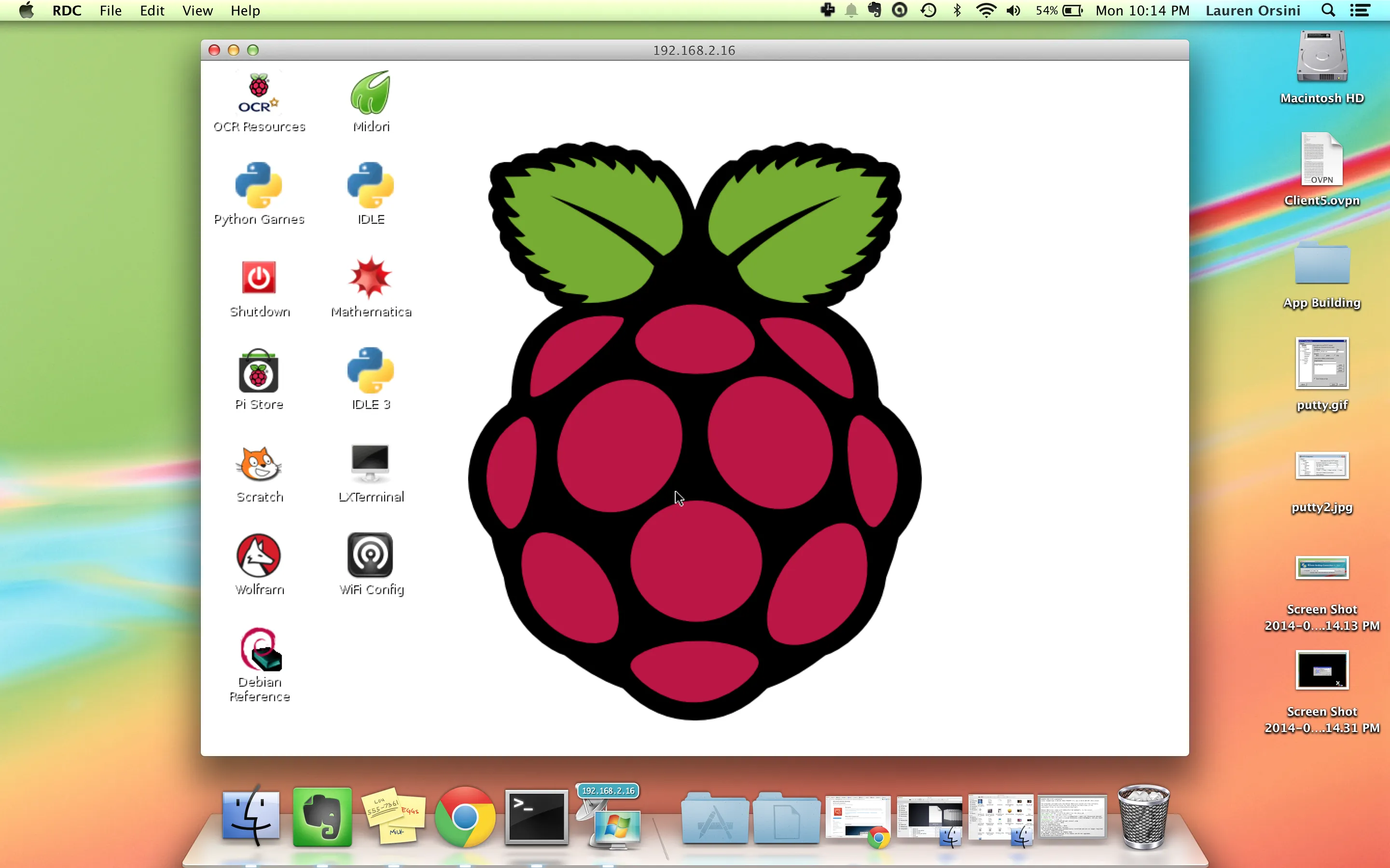 现在你有一个可以连接树莓派与你的电脑的IP地址了,如果你使用的是Mac,你已经有了内置的SSH,启动你的终端应用并输入: