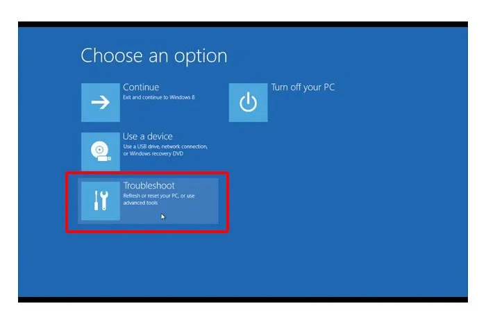 当您单击了立即重新启动按钮,在下一页屏幕中,你将会看到一些可以选择的选项。这里选择疑难解答