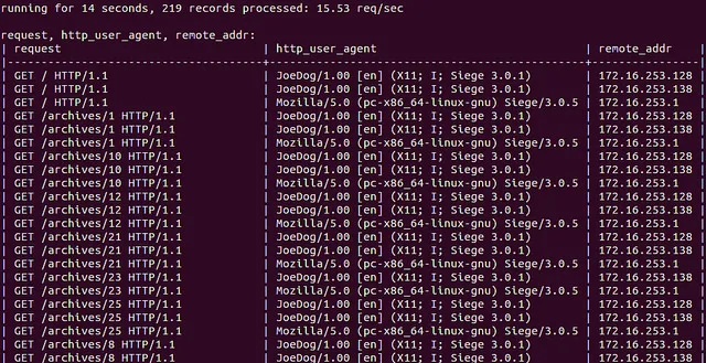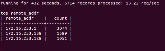 如果你不需要以上软件提供的综合性报告或者长期数据统计功能,只是需要一种快速简便的办法去监控 Nginx 服务器的请求的话,我建议你采用一个叫 ngxtop 的命令行工具。
