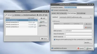 然后把您的DNS服务器调成”127.0.0.1″ – 在GNOME界面下的话,只要到Network Connections(网络连接)选项然后选择”Edit”并在”DNS servers”输入”127.0.0.1″就好了。如果您用的是DHCP的话,请选择Automatic (DHCP) addresses only”, 这样的话才能输入DNS服务器。然后只要重连网络便可。