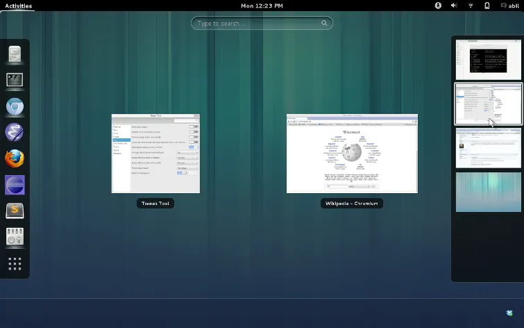GNOME 提供了桌面核心接口例如交换窗口,启动应用程序以及显示提示。它利用先进的图形硬件来实现吸引人的、创新的界面思想,提供了愉悦简单的用户体验。GNOME Shell 定义了 GNOME 3 的客户体验。