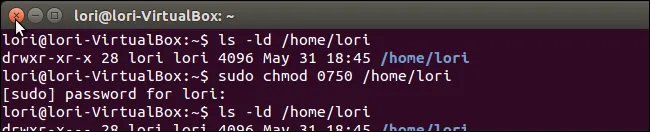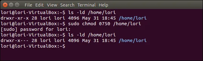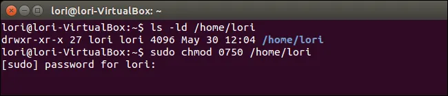 sudo chmod 0750 /home/lori