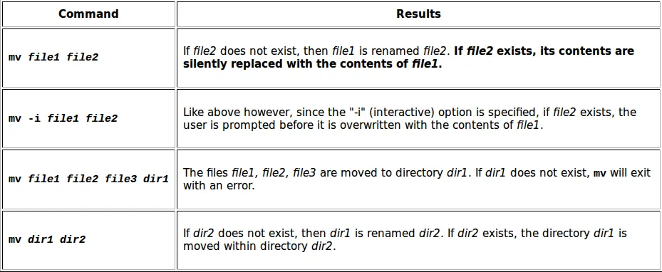下表是一些mv命令的实例