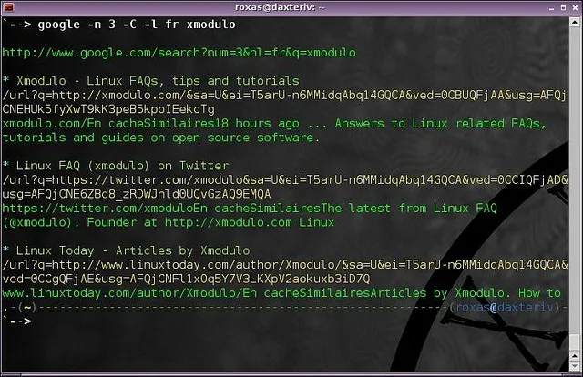 它会打开网页浏览器,并转到合适的搜索页面。然而,如果你想要的是从终端窗口查看搜索结果,而不是打开什么网页浏览器,那么我推荐你使用cli-google。它是一个超级老古董了(最后一次更新是在2009年),但我喜欢它。这是一个简单而直接的应用,它会忠实地干好它应该干的事。