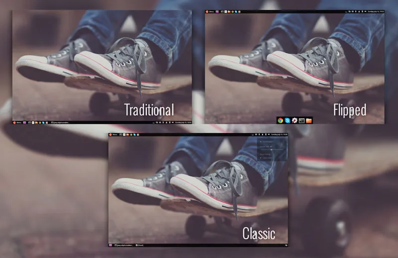 - Traditional — 这是默认的布局,控制面板在屏幕的顶部