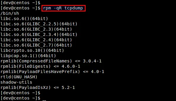 现在我们来检查一个未安装的RPM包的依赖关系(本例使用 tcpdump)。首先,我们使用yumdownloader把tcpdump的RPM包下载下来