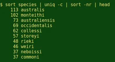 从多列的表中做’top 10’等排名,需要更多些的命令行工具。我将会在未来的文章中证明他们的用处。