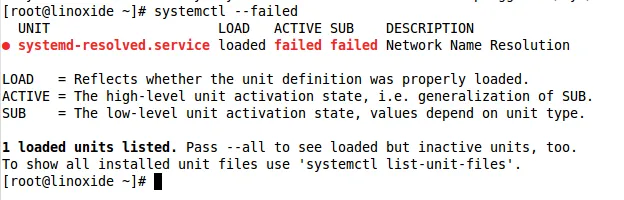 [root@linoxide ~]# systemctl --failed
