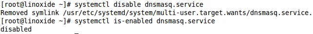 [root@linoxide ~]# systemctl disable dnsmasq.service