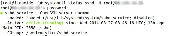 [root@linoxide ~]# systemctl status sshd -H root@1.2.3.4
