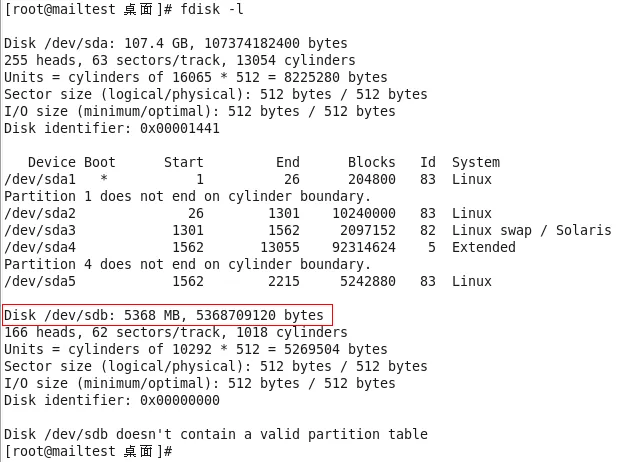 简单吧!这时,你就可以执行#fdisk -l 查看自己的分区了,会多出一个硬盘,效果见图: