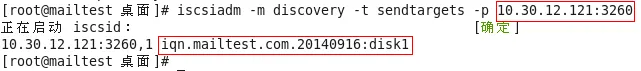 #iscsiadm -m node -T iqn.mailtest.com.20140916:disk1 -p 10.30.12.121:3260 -l(效果看下图)