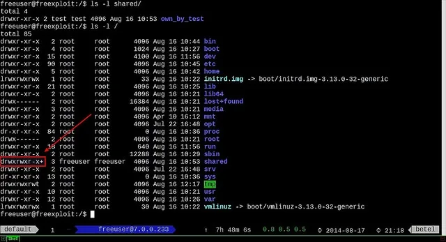 我创建一个目录/shared给一个假设的用户,名叫freeuser