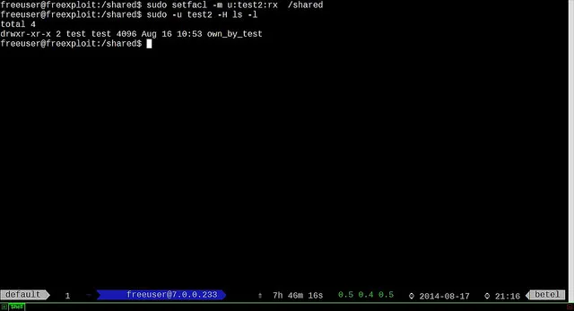 $ sudo setfacl -m u:test2:rx /shared