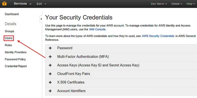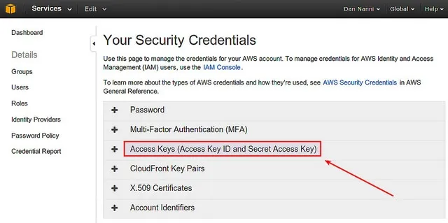 via: http://ask.xmodulo.com/create-amazon-aws-access-key.html