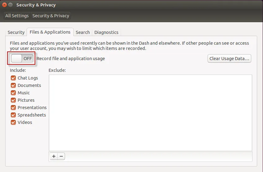 你也可以关闭“记录文件与应用使用(Record file and Application usage)以阻止系统记录你当前使用的文件和应用。