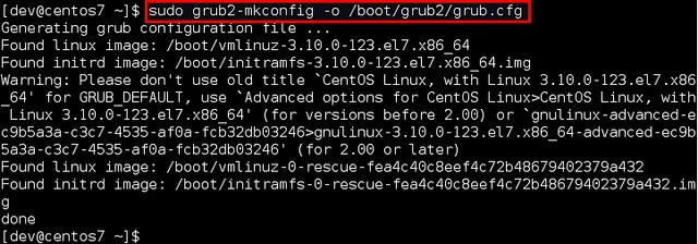 $ sudo grub2-mkconfig -o /boot/grub2/grub.cfg
