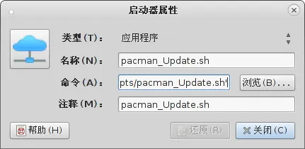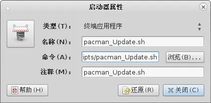 按照旧思路,在面板中添加启动器指向 .sh 脚本,以这个为例: