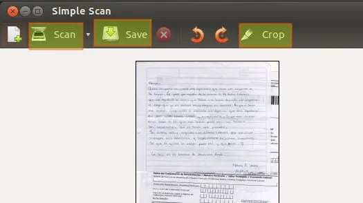 现在我们可以打开”Simple Scan”(或者其它扫描工具)并开始扫描文件。我们可以旋转,修剪,和保存生成的图片: