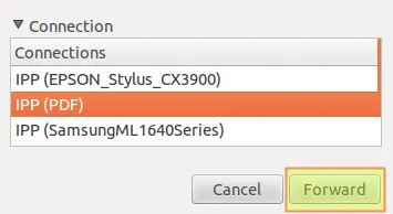 要安装Epson喷墨和PDF打印机,我们只需重复第1-5的步骤即可,并每一次选择左边的打印队列。例如,在下图中选择PDF打印机: