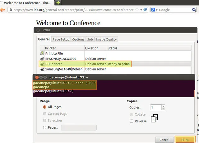 从Ubuntu12.04中打印,通常在本地用gacanepa(具有相同名字存在打印机服务器上)。