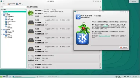 由于时间关系以及各种迫不及待,我只安装了默认的KDE桌面,新的Gnome 3.14有待探索。