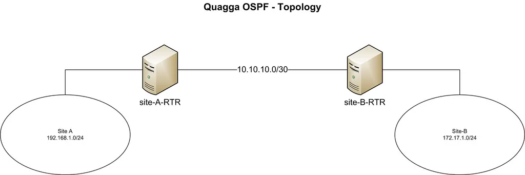 我们的CentOS位于所述专用链路的两端。两台主机名分别设置为“site-A-RTR”和“site-B-RTR’。下面是IP地址的详细信息。