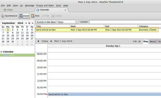通过 ‘Event and Tasks’ -> ‘Import…’ -> ‘Select file’ 下载你的日历并添加到你的Thunderbird日历中: