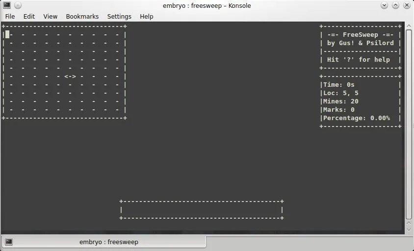 Freesweep是一个针对终端的扫雷复制品,它可以配置表行列、炸弹比例、颜色,也有一个高分表。