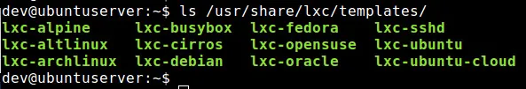 为了在指定环境下(比如 Debian Wheezy 64位)创建 LXC 容器,你需要一个相应的 LXC 模板。幸运的是 LXC 提供的工具集成了一整套现成的 LXC 模板,你可以在 /usr/share/lxc/templates 目录下找到它们。
