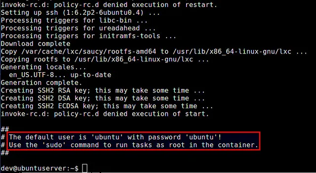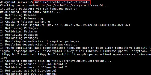 $ sudo lxc-create -n <container-name> -t ubuntu