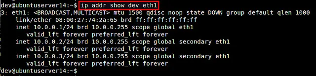 $ sudo ip addr del 10.0.0.1/24 dev eth1